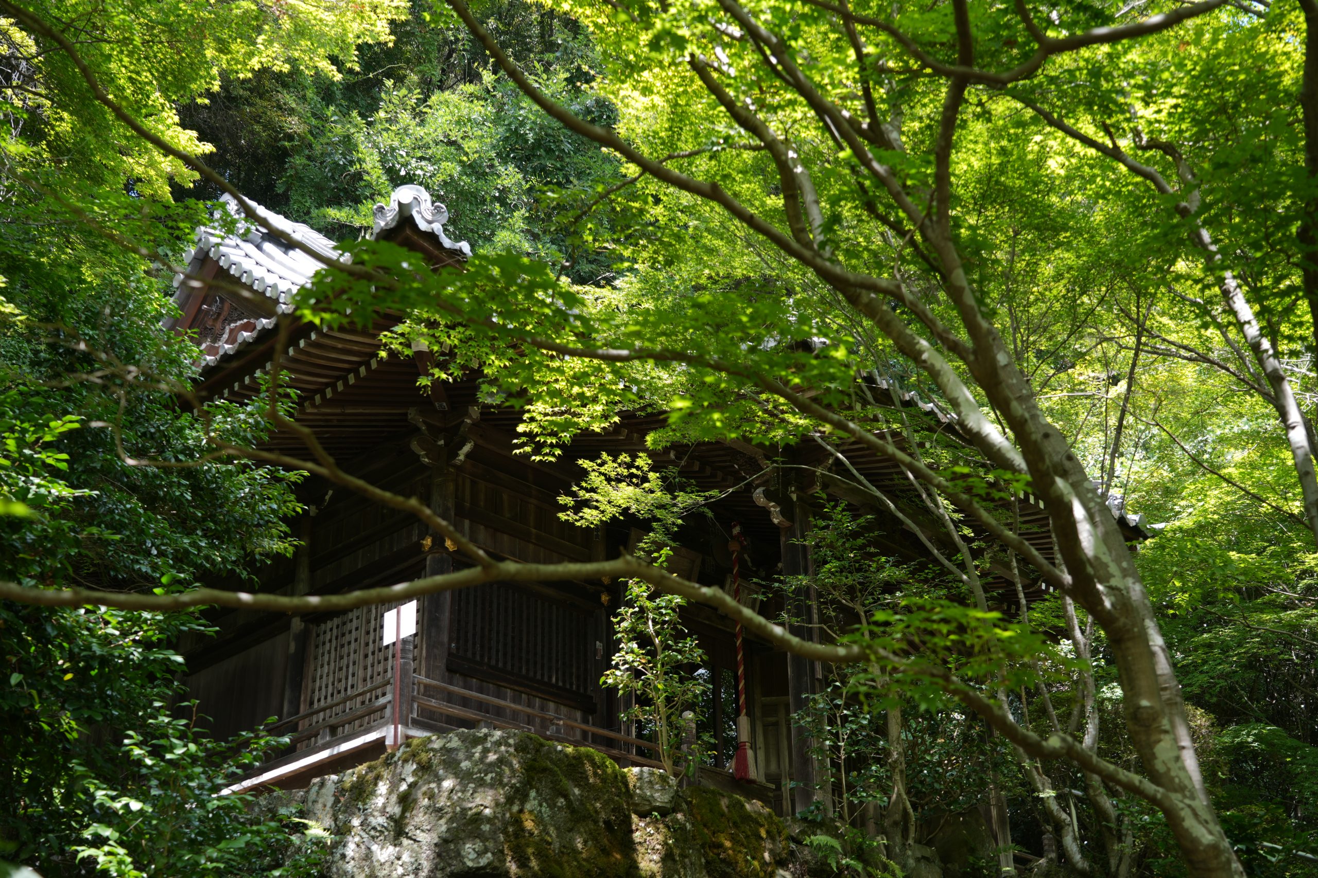 「本堂の木組みの部分には、春日大社の神様のお使いである鹿が彫られています。おそらく、大原野神社との繋がりで彫られているものだと思います。現在では、歴史のみが物語る神仏習合ですが、境内のいたるところに痕跡が残されています。」