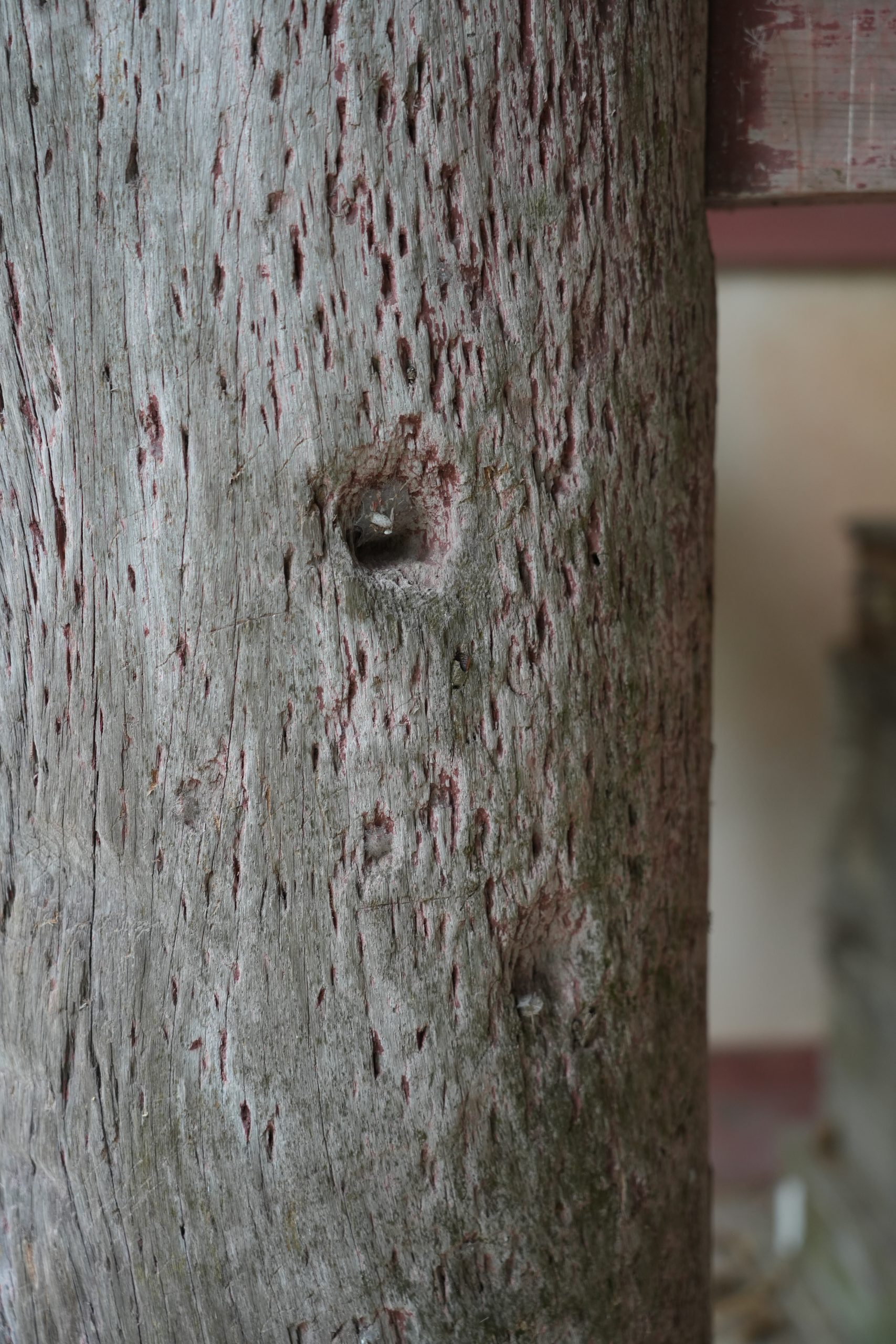 「その仁王門の柱をよく見てみると、後ろ側の柱だけに無数の穴があります。最初は虫食いや傷んでいるのかなと思っていたのですが、仁王門の一部分だけに存在するということが不思議でした。」