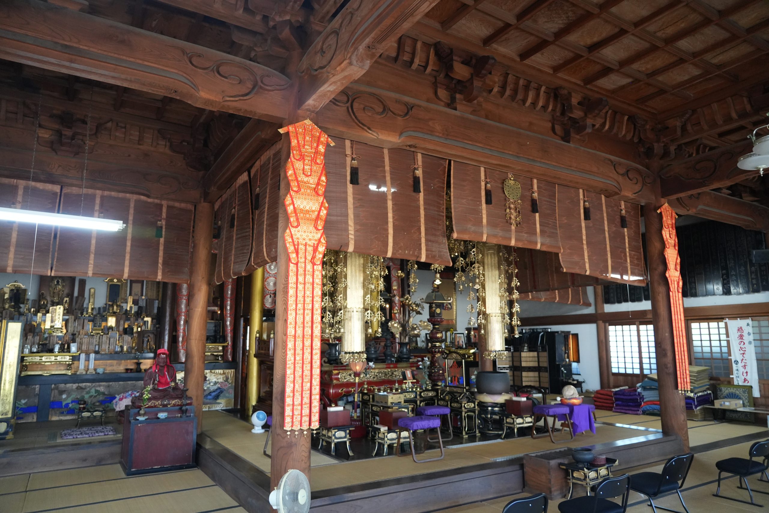 檀家の皆さんの回向の場所である本堂と隣接して、祈願をするための道場・不動堂が建てられています。