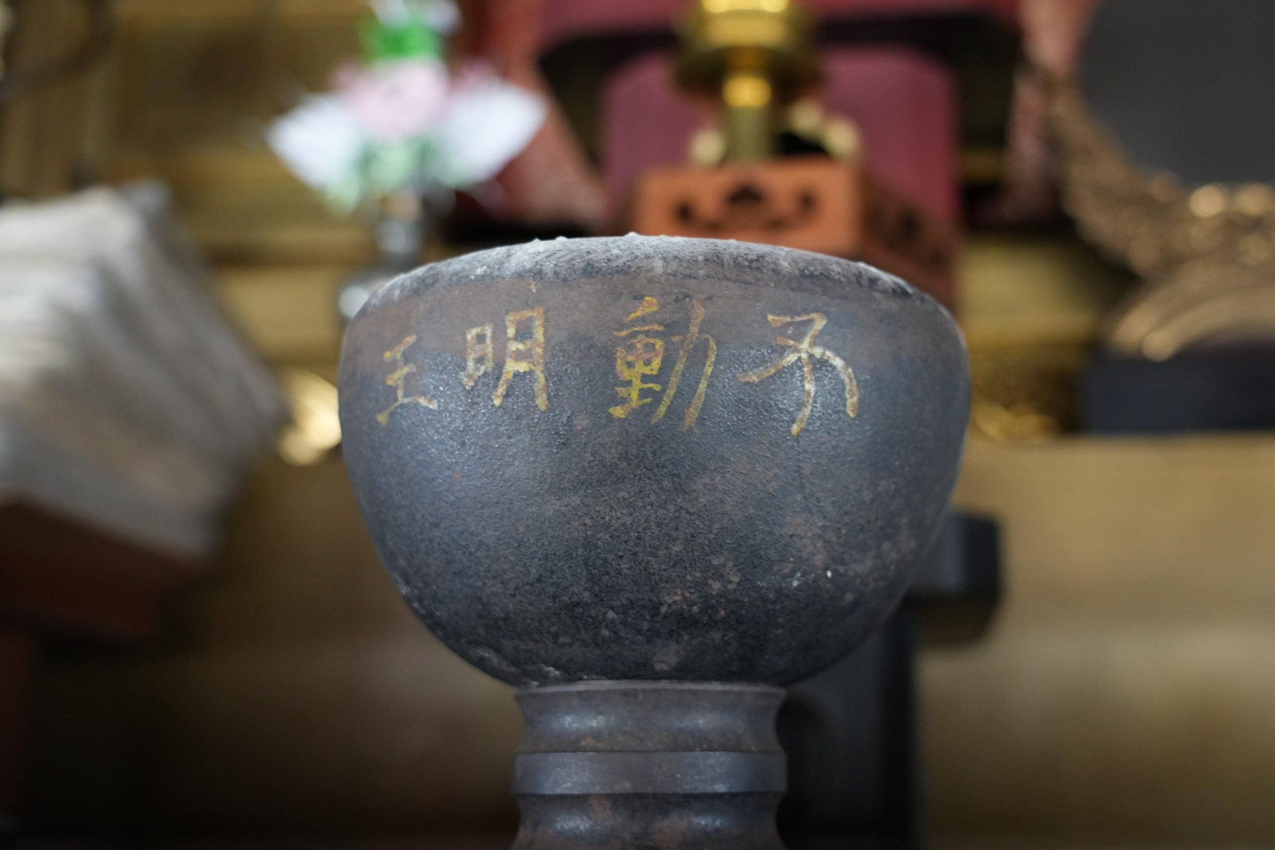 「また、お前立のお像も珍しいお姿をされています。こちらの不動明王様は秘仏ではありません。今回特別にお像の前の荘厳を外してみるので、その珍しいお姿をお参りいただければと思います。」