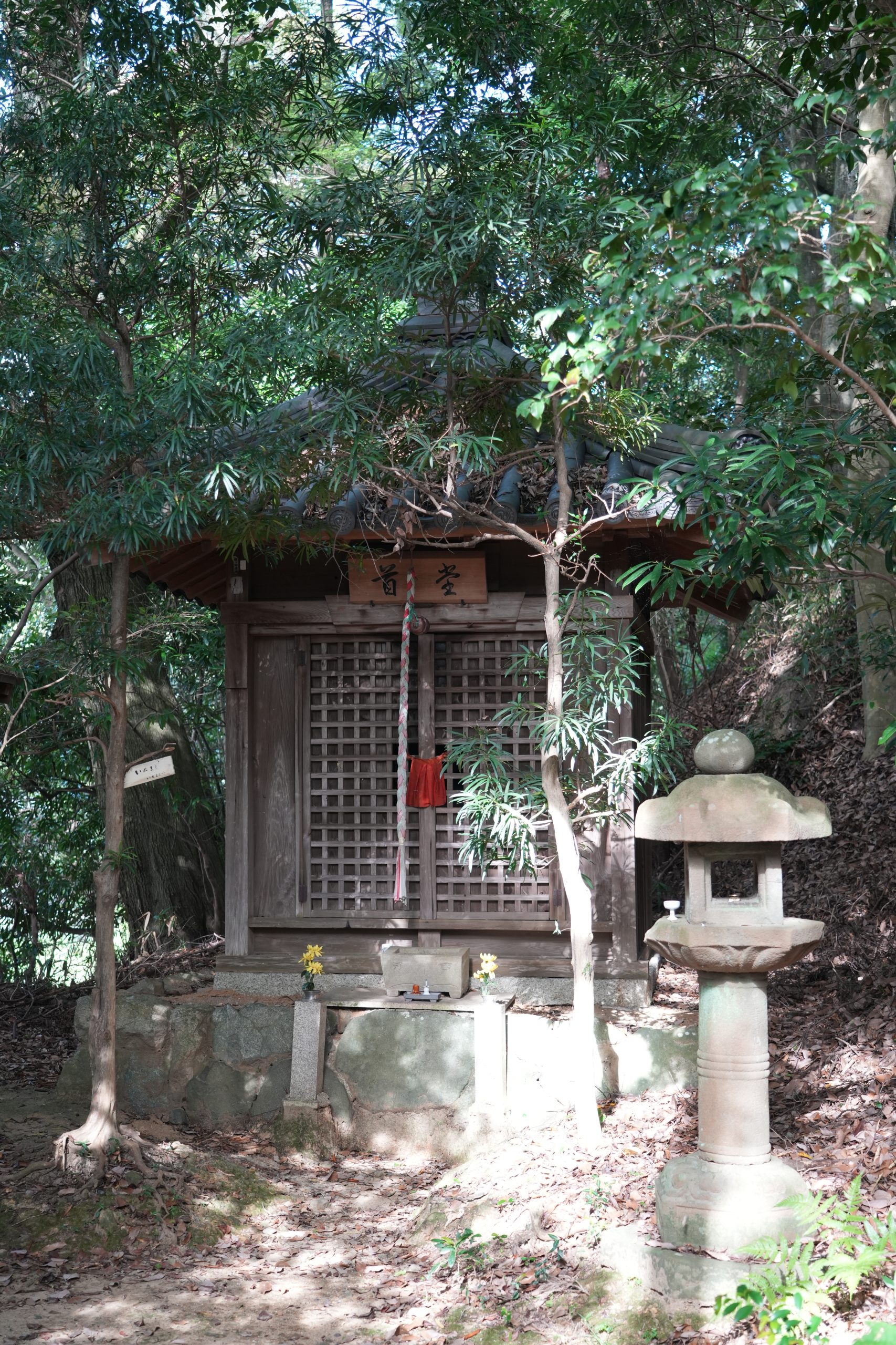 「こちらは、首堂というお堂です。このお堂の歴史は古く、源平合戦が繰り広げられていた平安時代の終わりごろまで遡ります。現在の兵庫県須磨付近で行われた合戦である一ノ谷の戦いで源氏方は勝利をします。源氏方で活躍した源義経公は、敵味方問わず一ノ谷の戦いで戦死した人々を弔うために、戦死者の首級を3艘の船に乗せ、そのうちの2艘を四天王寺に、残りの1艘を松尾寺に送ったと伝えられています。その送られた首級を丁重に葬り弔った場所がこの首堂が建つ場所であるとされています。」