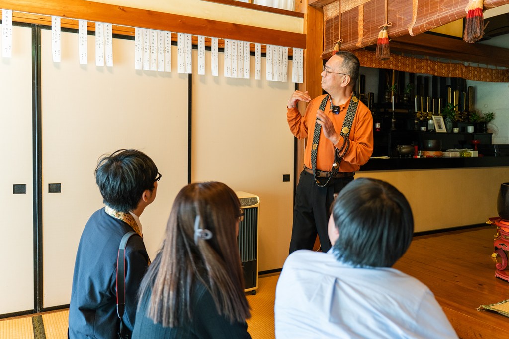 あまりの迫力に驚く学生たちにご住職が優しく語り掛けます。