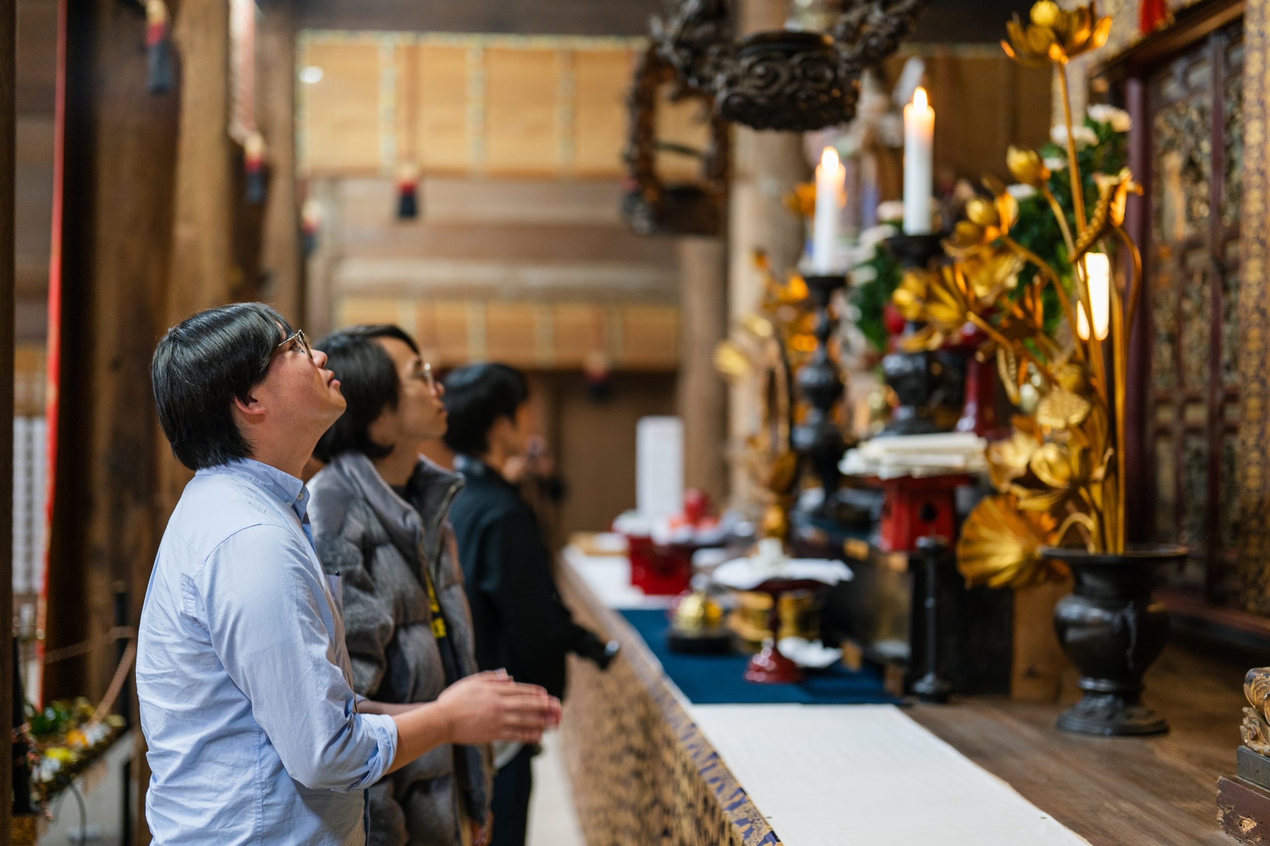 「また、数え年で1歳、つまり満0歳のお子さんが清水寺で御祈祷された際は、こちらの大仏様の前での写真を許可しています。お子さんを交えてご家族やパートナーの皆さんのこれからの人生が幸多きものになりますようにという想いでこの撮影を始めたのですが、なぜか、ご家族やパートナーの方々がお子さんと写真を撮るのではなく、私たち僧侶とお子さんとの写真となることがほぼ百バーセントです(笑)」