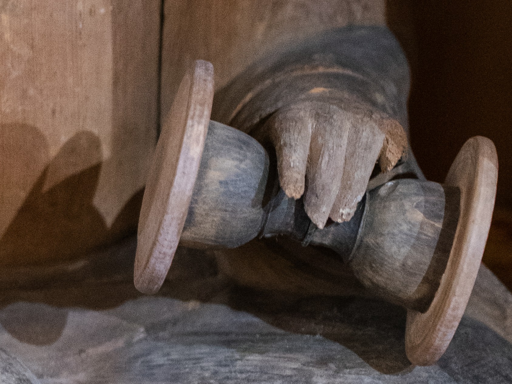 「御本尊様をおまつりする厨子のまわりには、四方を護る四天王様をおまつりしています。こちらのお像は平安時代に造立された仏様で、彩色は江戸時代頃に施されたと考えられています。最近調査をしていただいたので、もしかしたら何か新しい発見があるかもしれませんね。」