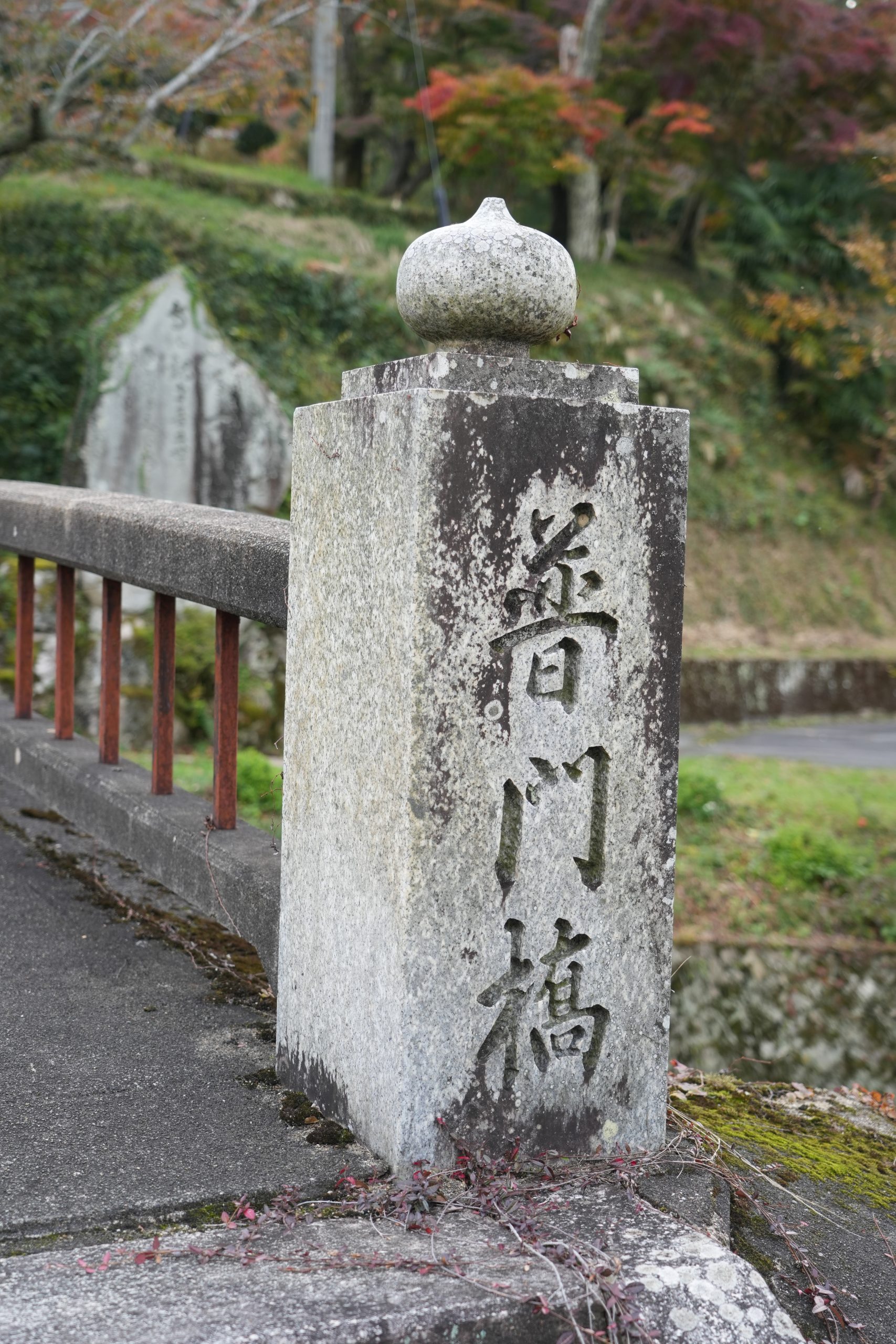 ご住職とともに少し歩くと、『竹林山』と記された大きな石碑と『普門橋』という橋にたどり着きました。