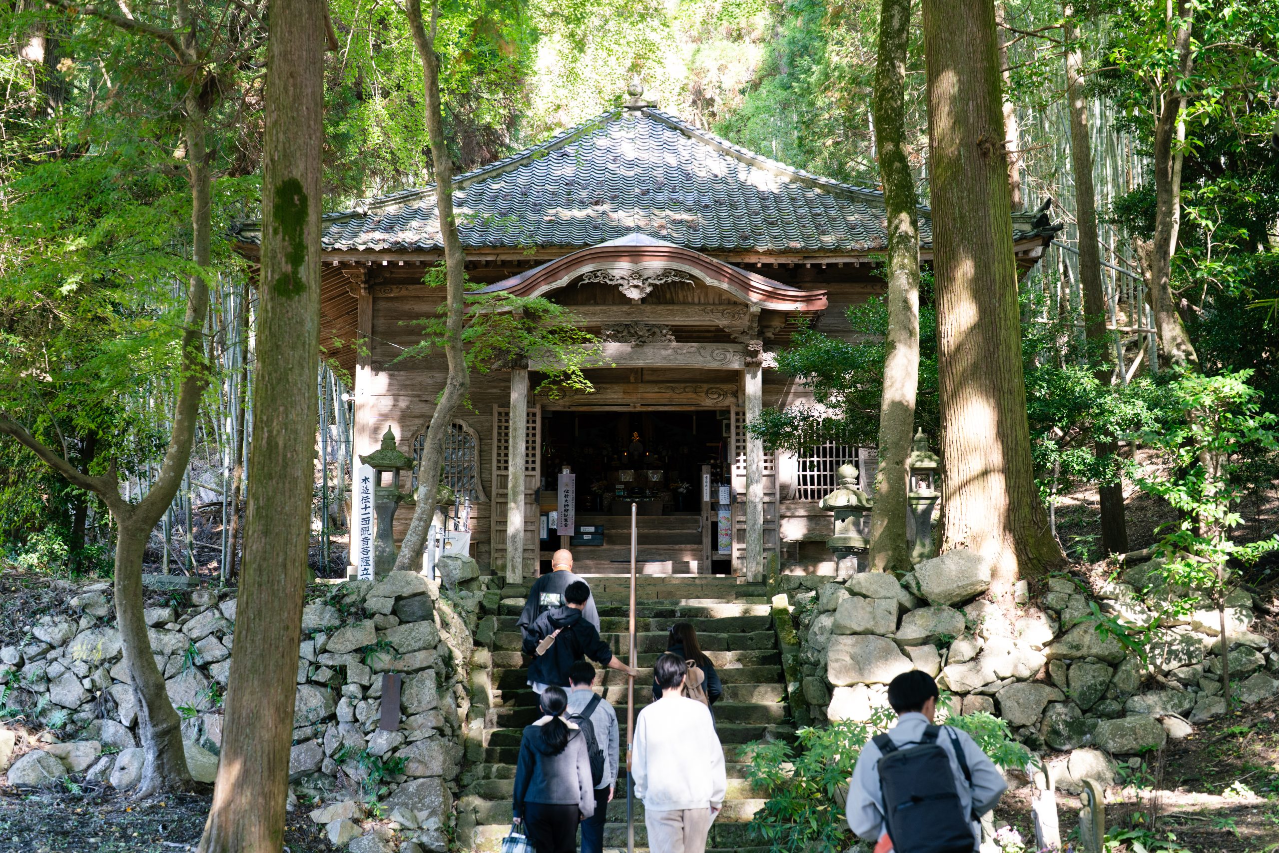 ご住職とともに学生たちは馬頭観音堂の裏へ